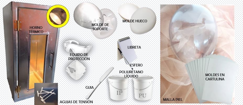 Tijeras de corte de tela / papel, tubo de hilo nailon, Agujas varias, cinta ancha transparente, alicate de punta recta, peinilla, Toalla de tela, lámina de vidrio, cinta de enmascarar, guantes resistentes al calor.Los demás productos de uso no se incluyen en la entrega pero si se usan en la práctica; debido a que son fáciles de adquirir por el estudiante en su ciudad, como :